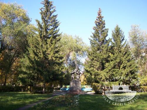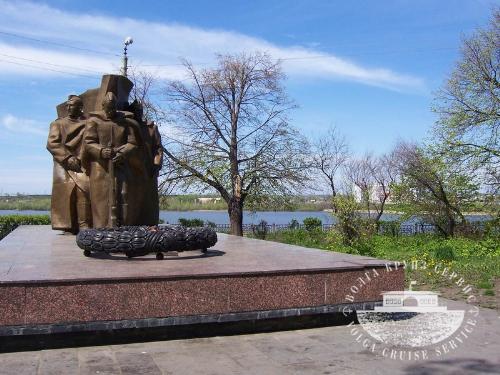 Мемориал памяти погибших воинов-сызранцев на центральной площади города. Здесь сооружена стела, на лицевой части которой высечены слова: «Вечная слава героям, павшим в боях за свободу и независимость нашей Родины», скульптура воина, преклонившего колени над могилой погибших товарищей, и Вечный огонь боевой славы в память о погибших.