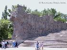 Поднимаясь по гранитной лестнице к Площади героев, посетитель рассматривает "Стены-руины", уменьшающиеся и сходящиеся в далекой перспективе.