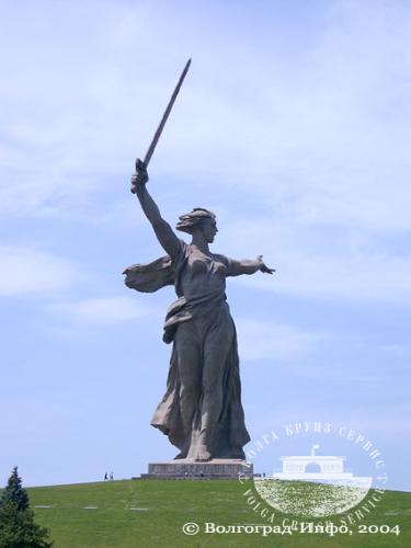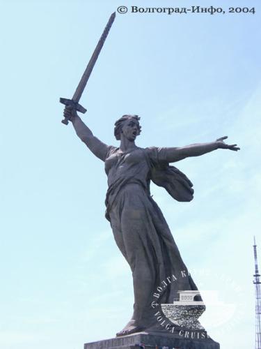 Скульптура Матери-Родины венчает весь ансамбль памятника на Мамаевом кургане. Высоко подняв меч, она зовет к полной и окончательной победе над фашизмом, к освобождению нашей Родины и народов Европы от гитлеровского ига.