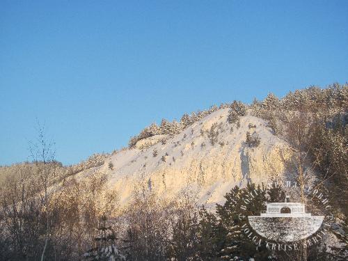 Спускаясь, обратите внимание на белые скалы. Это визитная карточка национального парка "Хвалынский". Хвалынск, одно из любимых мест для любителей горнолыжного спорта в регионе. Удобно оно и для тех, кто собирается впервые встать на горные лыжи или сноуборд. Сюда нужно ехать зимой. Горнолыжный комплекс оборудован бугельными подъемниками и трассами разной степени сложности. Склоны дают возможность получить удовольствие от катания людям с разным уровнем подготовки. На горнолыжном комплексе есть неплохой прокат, работают инструктора. Приехавшие на несколько дней, могут разместиться в комфортабельных срубовых коттеджах или в гостинице с комфортабельными номерами со всеми удобствами. На территории комплекса находится отдельно стоящее здание в Альпийском стиле. В нем находится ресторан и большой зал для проведения дискотек и других развлекательных мероприятий. Особой гордостью ГЛК являются три бани, одна из них сауна с бассейном и большой комнатой, находятся в цоколе мини гостиницы и рассчитана на большую компанию. Две других находятся непосредственно на склоне, в больших срубах одна из бань топится по «черному».